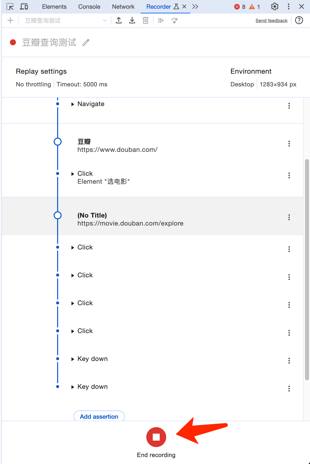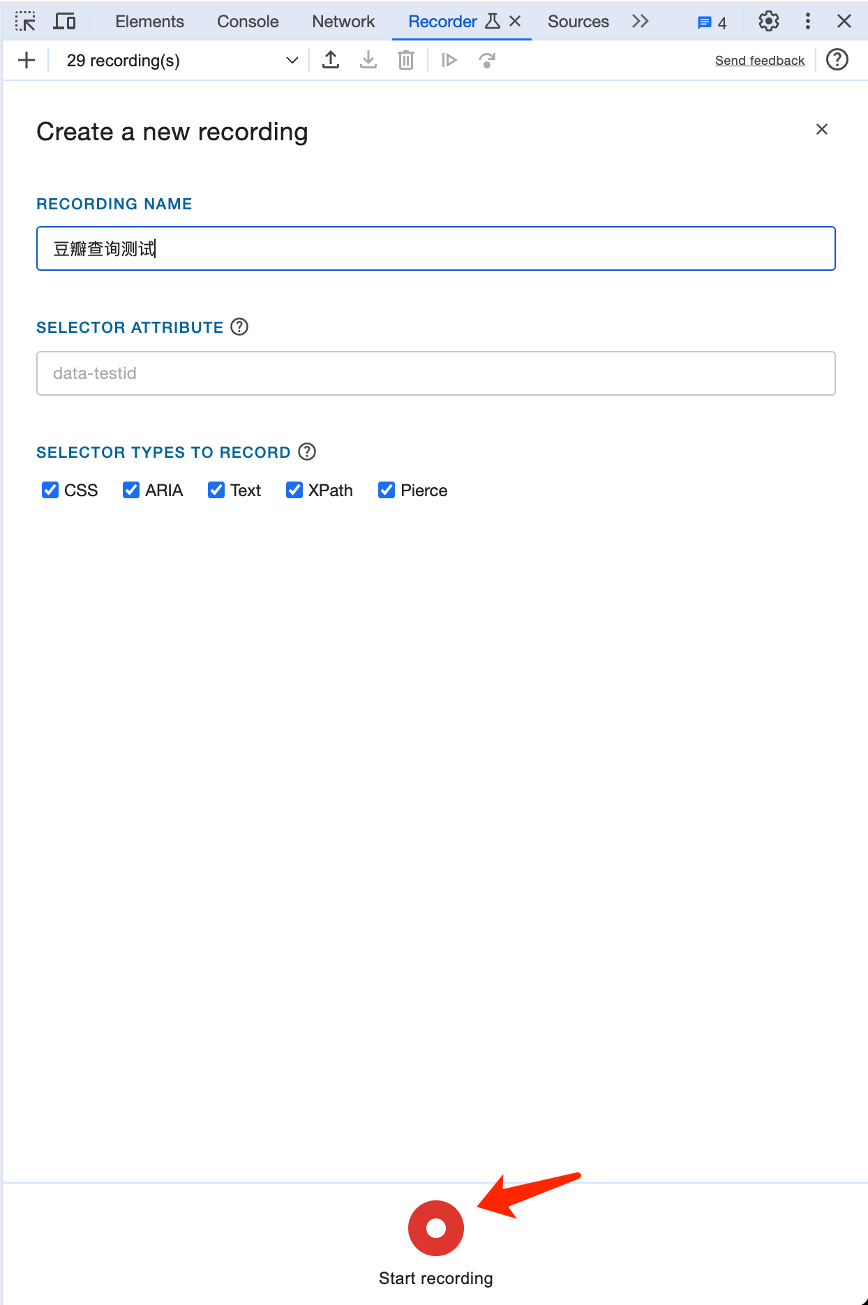 We fill in Douban Query Test (Or feel free to fill in whatever you want) as the script name, and then click Start Recording: